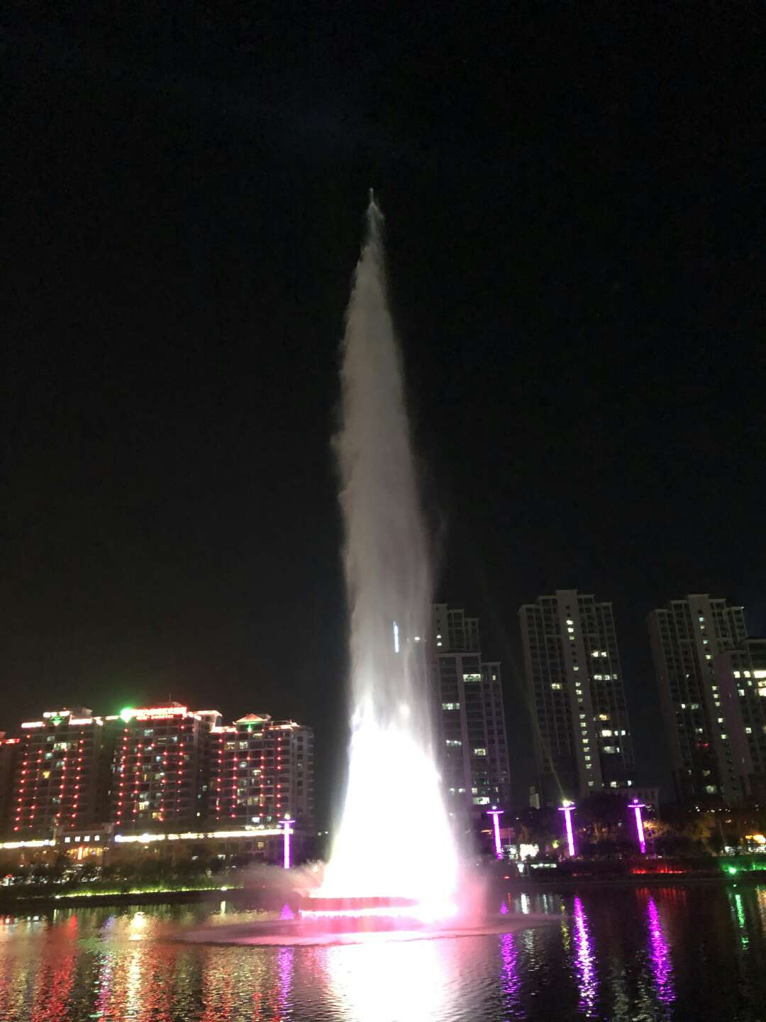 晚上的音樂噴泉才是重磅戲,它河源大橋與珠河大橋之間的新豐江中心,擁有亞洲第一高之稱,噴泉演示時長半個小時,海邊的微風(fēng)吹得很是舒服,夜晚的美景更是賞心悅目;經(jīng)過一天的游玩,晚上的音樂噴泉無疑是最好的放松項目。